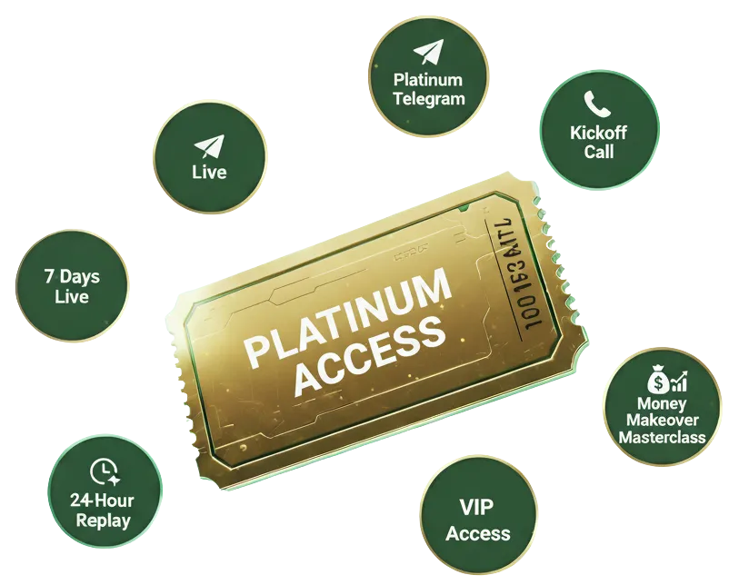 This is your chance to access pre-event coaching, the Money Makeover Masterclass, and the most elite trading community in the challenge.